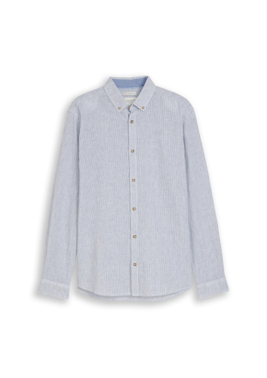Hledáte dokonalou košili do teplých dnů, ve které se budete cítit svěže a zároveň vypadat zkrátka skvěle? Tato pánská košile Tom Tailor s jemným světle modro-bílým proužkem je trefou do černého. Její ležérní eleganci podtrhuje klasický "button-down" límeček a stylové kontrastní zapínání s dřevěným vzhledem.
