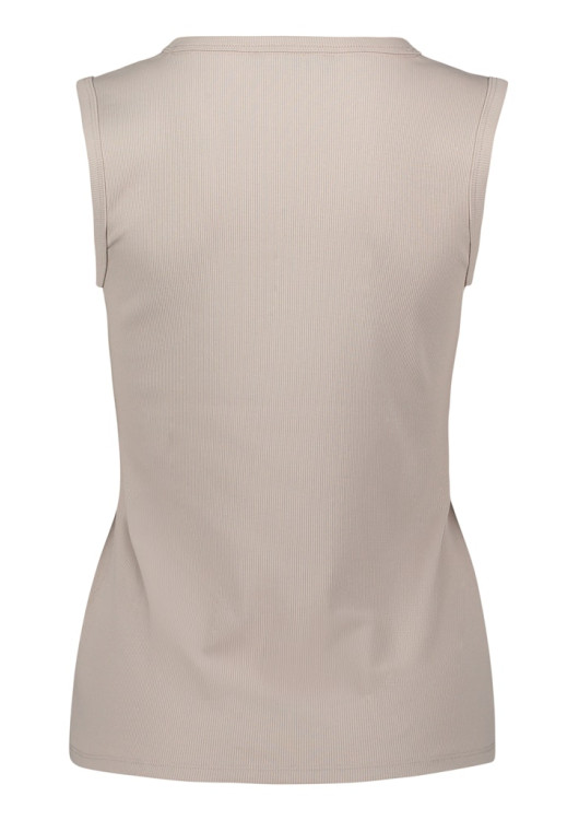 Hlavním designovým detailem je kamínková aplikace ve tvaru loga, která topu dodává jemný záblesk luxusu, aniž by působila okázale. Je to kousek stvořený pro ženu, která oceňuje kvalitu přírodního materiálu a hledá kousek, který s lehkostí doplní sako do kanceláře nebo kardigan pro volný čas. Top, který díky elastanu perfektně sedí a zajistí vám pocit sebevědomí v každé situaci.