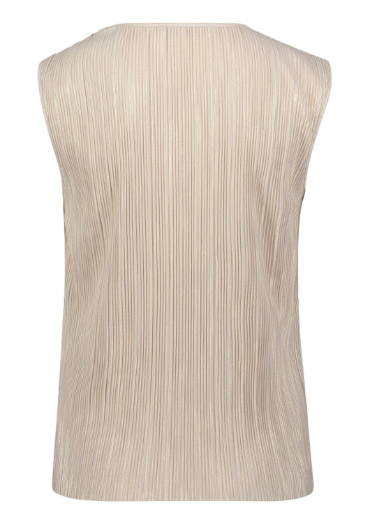 Je to kousek stvořený pro ženu, která oceňuje moderní materiály a chce vypadat upraveně bez velkého úsilí. Top bez rukávů je ideální pro vrstvení pod sako nebo kardigan, ale díky svému výraznému vzhledu zazáří i samostatně. Kousek, který s lehkostí propojí vaši ženskost s aktuálními módními trendy.
