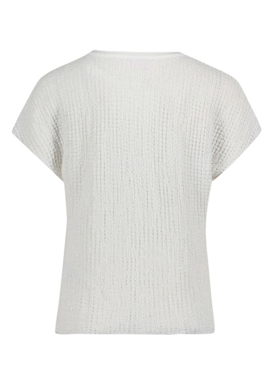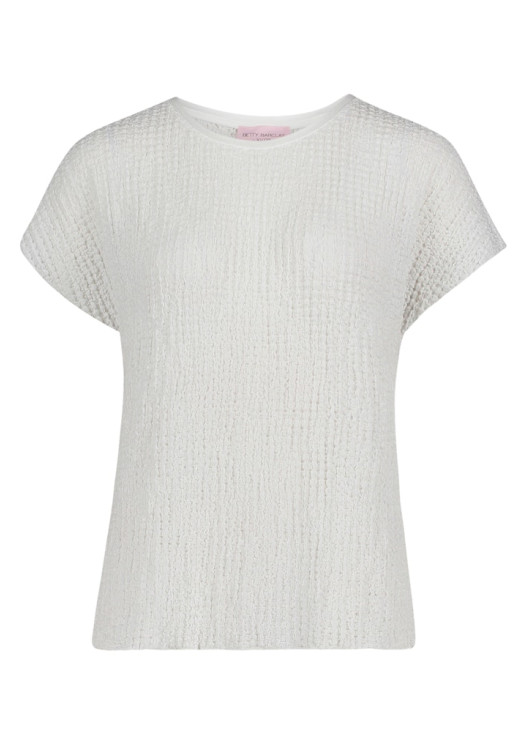 Povyšte svůj každodenní outfit na novou úroveň s kouskem, který zaujme na první pohled i dotek! Toto překrásné dámské tričko od značky Betty Barclay přináší do vašeho šatníku svěží, bílou barvu a především velmi moderní, strukturovaný povrch s výrazným 3D efektem. Záměrně "zmačkaná" textura je nejen obrovským módním hitem, ale také fantasticky schová jakékoliv nedokonalosti postavy.