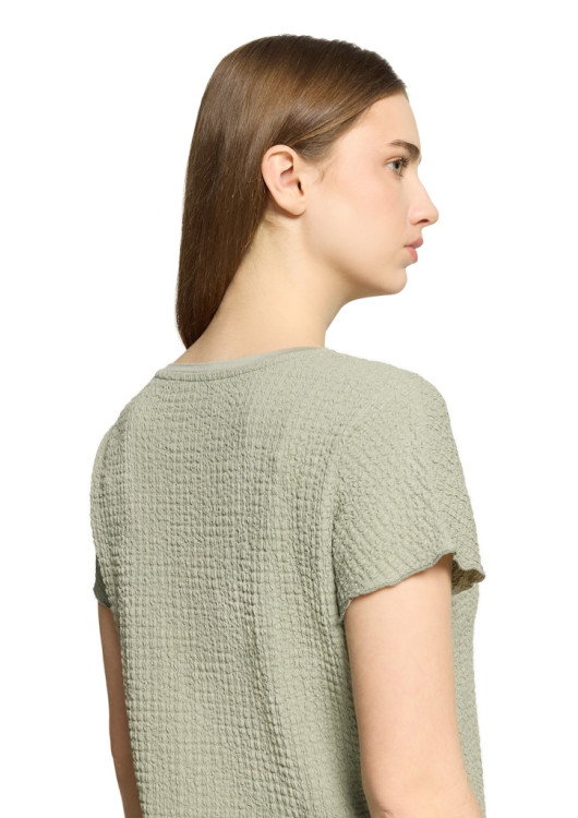 Povyšte svůj každodenní outfit na novou úroveň s kouskem, který zaujme na první pohled i dotek! Toto překrásné dámské tričko od značky Betty Barclay přináší do vašeho šatníku svěží, šalvějově zelenou barvu a především velmi moderní, strukturovaný povrch s výrazným 3D efektem. Záměrně "zmačkaná" textura je nejen obrovským módním hitem, ale také fantasticky schová jakékoliv nedokonalosti postavy.