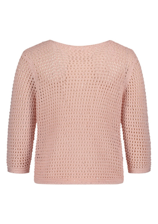 Vneste do svého jarního a letního šatníku lehkost a ženskost! Tento nádherný pletený svetr od Betty & Co vás okouzlí svým celoplošným prolamovaným vzorem, díky kterému je neuvěřitelně vzdušný a svádí k hravému vrstvení. Něžný pudrově růžový odstín doplňuje velmi jemný, nenápadný třpyt vetkaný do struktury příze, který celému kousku propůjčuje luxusní a svěží vzhled.