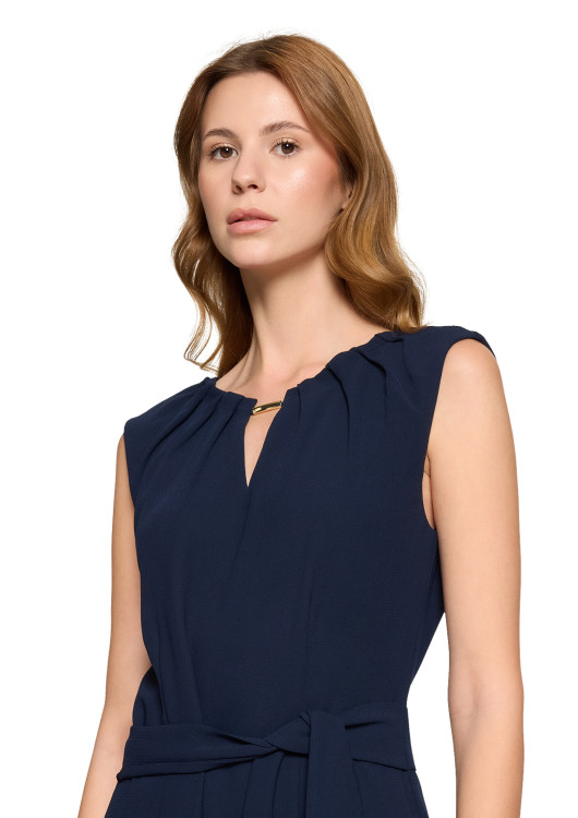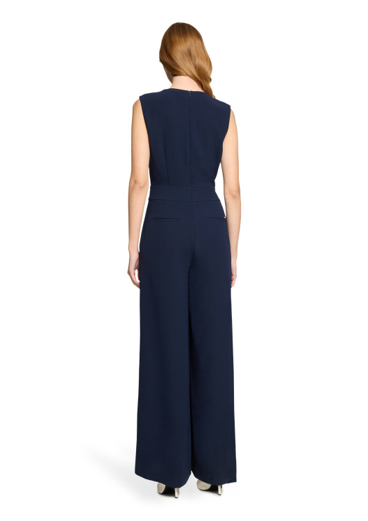 Čeká vás významná společenská událost, návštěva divadla nebo formální večeře a vy toužíte po něčem originálnějším, než jsou klasické šaty? Tento jednobarevný, temně modrý overal od Betty & Co je sofistikovanou volbou pro ženy, které milují čisté linie a nadčasový styl. Navy barva je navíc fantastickou, jemnější alternativou k černé, která dokonale lichotí každému tónu pleti.