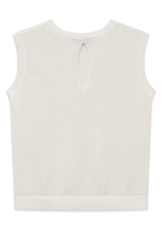 Hlavním designovým překvapením je rafinovaný průstřih na zadním díle, který vestě dodává ženský šmrnc a ještě větší prodyšnost. Je to kousek stvořený pro ženu, která miluje kvalitní přírodní materiály a hledá univerzální prvek, který snadno zkombinuje se lněnými kalhotami na pláži i s elegantní sukní do města.