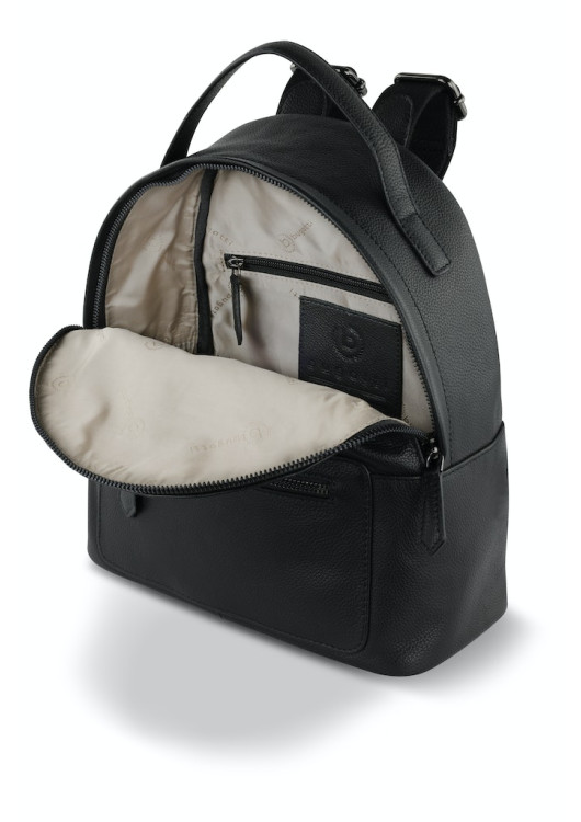Vyměňte těžkou kabelku za pohodlí, kterému nechybí šmrnc! Tento elegantní dámský batůžek od světoznámé značky Bugatti je navržen tak, aby vás stylově doprovázel od ranní cesty do kanceláře až po odpolední toulky městem. Čistý zaoblený design v nadčasové černé barvě je oživen nádhernou zrnitou texturou materiálu a elegantními kovovými detaily v tmavém odstínu.