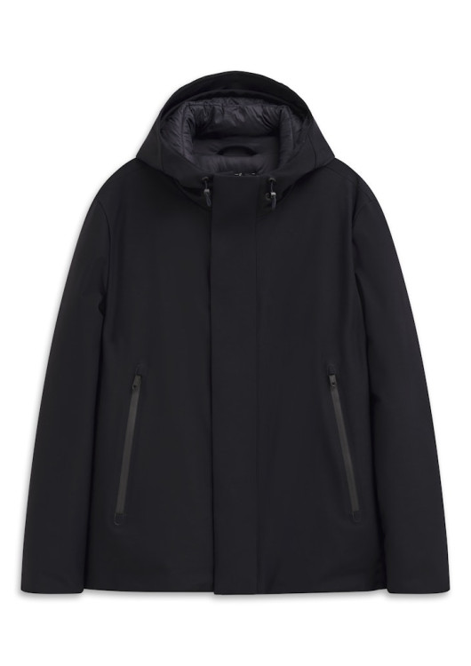 Silná bunda s kapucí a zateplením Sorona. Léga zakrývá zip na předním okraji. Dlouhé boční kapsy s nepromokavými zipy. Vnitřní manžety. Celá podšívka s vnitřními kapsami. Tento pružný, vodoodpudivý kousek má elegantní vzhled.