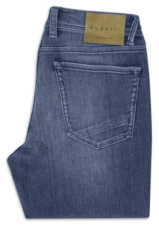 Zapomeňte na kompromisy mezi skvělým vzhledem a pohodlím. Tyto prémiové pánské džíny od značky bugatti posouvají hranice toho, co od džínoviny očekáváte. Na první pohled zaujmou klasickým, lehce sepraným vzhledem v nadčasovém modrém odstínu, který se hodí naprosto ke všemu. Autentický denimový styl podtrhuje luxusní kožená nášivka s nápisem "bugatti HANDCRAFTED" na zadním díle a rafinované diagonální prošití zadních kapes.