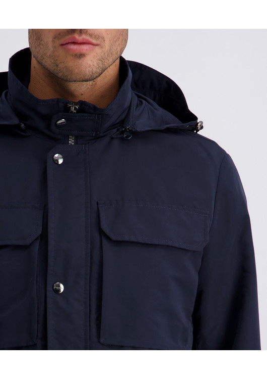 Hlavním designovým prvkem jsou výrazné nakládané kapsy, které bundě dodávají charakteristický vzhled, zatímco odnímatelná kapuce zajišťuje variabilitu podle počasí. Je to kousek stvořený pro muže, který ocení precizní vypracování – od kvalitních kovových zipů až po jemně vzorovanou podšívku, která dává bundě punc opravdového luxusu.