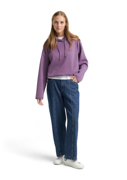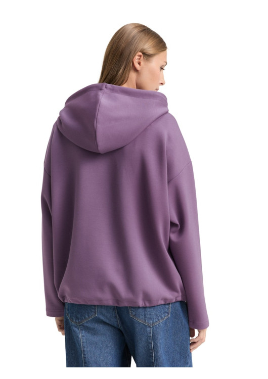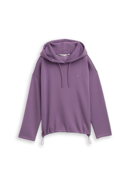 Mikina s kapucí a stahovací šňůrkou na kapuci a sníženým ramenním švem pro uvolněný střih. S malou výšivkou loga na hrudi a nastavitelným elastickým lemem. Vyrobena z nemačkavého, pružného a neoprenu podobného potápěčskému materiálu.