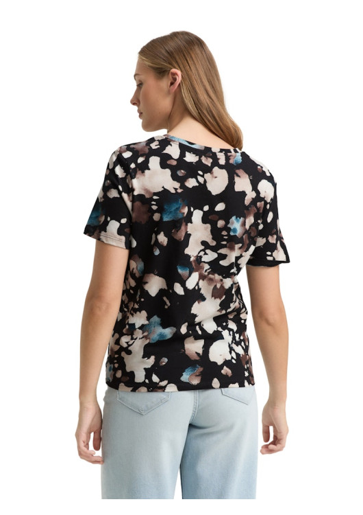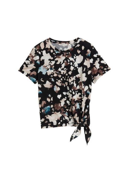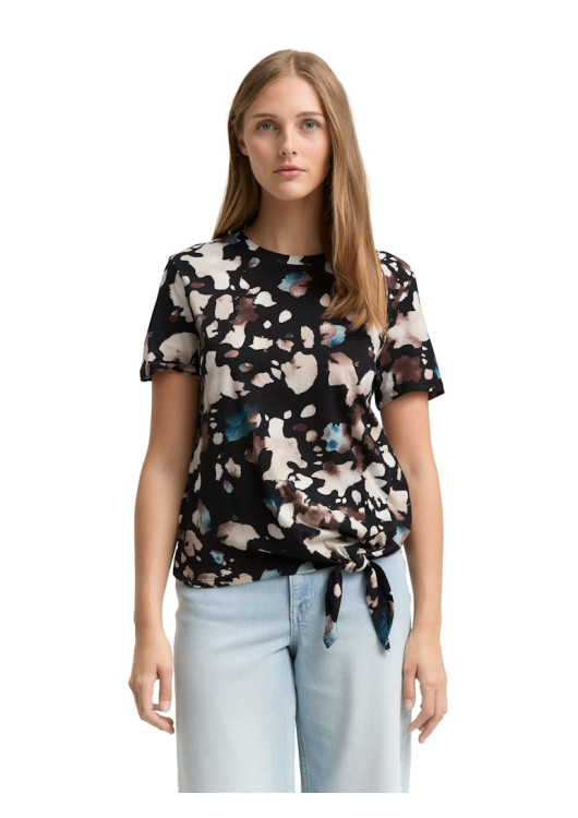 Denim Tom Tailor dámské triko s uzlíkem na přední straně. Vyrobeno z bavlněné tkaniny single jersey. V Rrovném střihu
