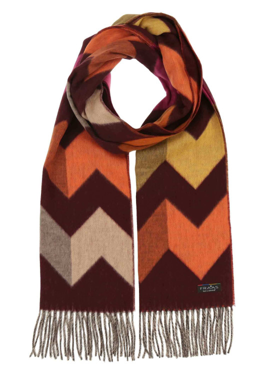 FRAAS Cashmink s grafickým cikcakovým vzorem (35 x 200 cm). Vysoce kvalitní materiál je obzvláště měkký, hřejivý a šetrný k pokožce – luxusní alternativa kašmíru. Vícebarevný vzor lze kombinovat různými způsoby, což je ideální pro elegantní i ležérní outfity. Tento tkaný šátek je ideální pro chladné dny a zahalí vás do stylu a pohodlí. Noste ho s bundami, kabáty nebo svetry – nezbytný kousek vašeho šatníku! 100% polyakryl.