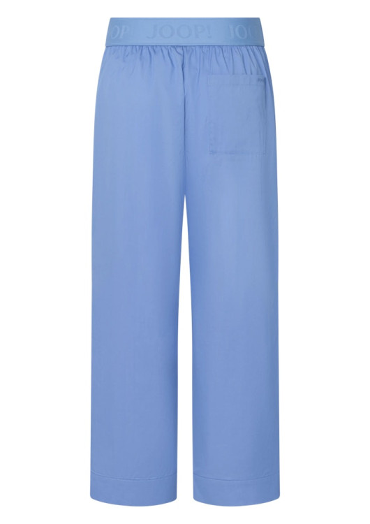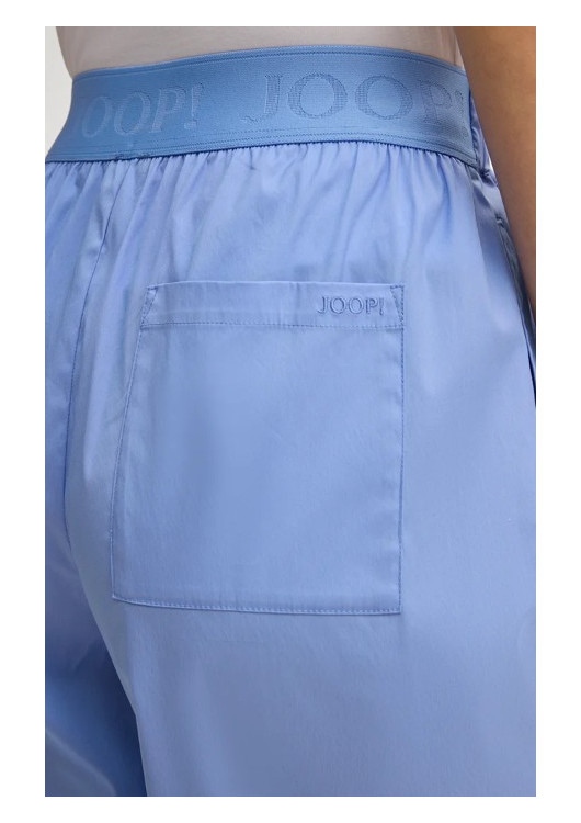 Hlavním designovým prvkem je propracovaný pas. Vpředu je řešen minimalisticky se stahovací šňůrkou, zatímco zadní část tvoří široká elastická guma s výrazným vytkávaným nápisem JOOP!, který kalhotám dodává sportovně-elegantní charakter. Na zadní straně nechybí jedna nakládaná kapsa zdobená jemnou výšivkou loga.