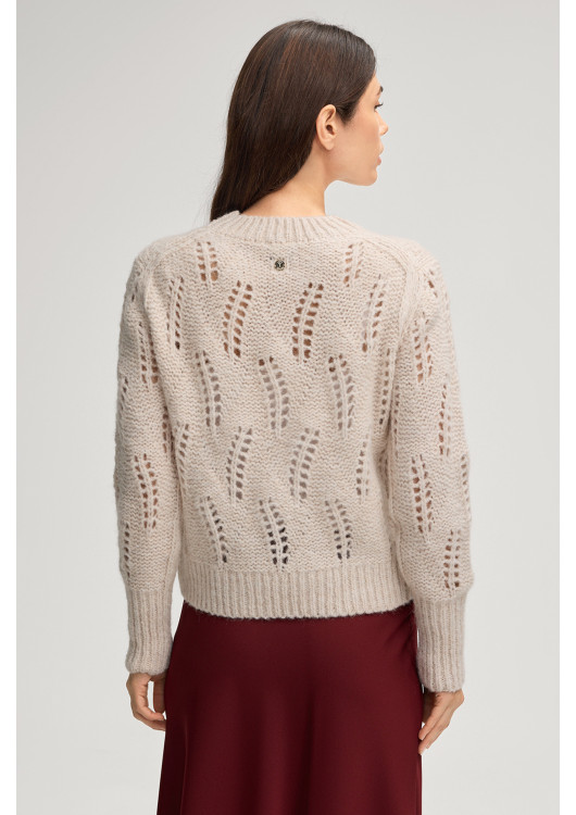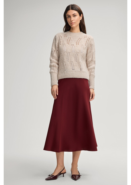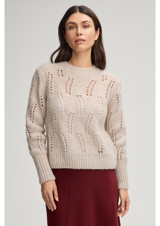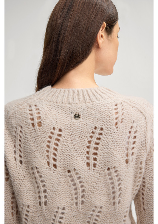 JOOP! dámský svetr Kalma s úpletem ze směsi alpaky a vlny se řadí mezi teplé nezbytnosti, pohodlně doplněné žebrovanými lemy na rukávech a lemu. Kulatý výstřih dodává modelu klasický vzhled.