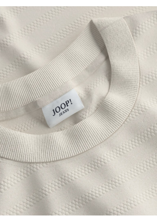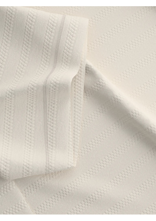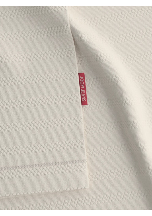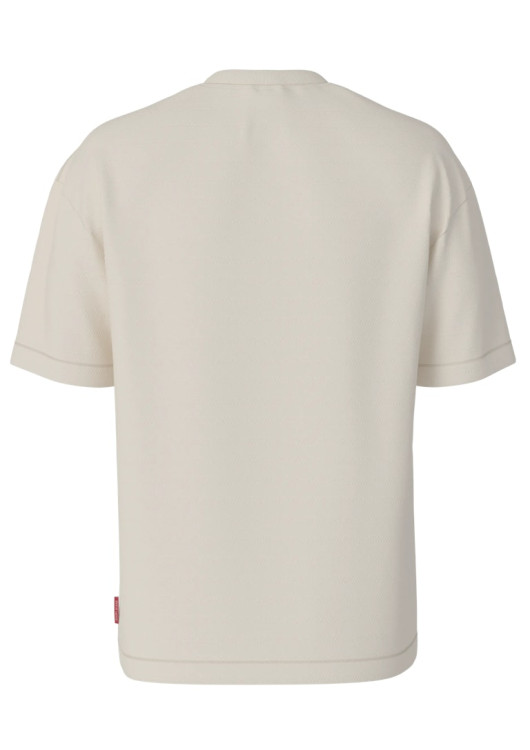 Tento model v elegantním krémovém odstínu je vyroben ze 100% kvalitní bavlny, která mu dodává prémiový vzhled a zaručuje maximální komfort. Absolutní dominantou trička je unikátní úplet s jemným plastickým vzorem horizontálních proužků, který přináší do vašeho šatníku rafinovanou originalitu.