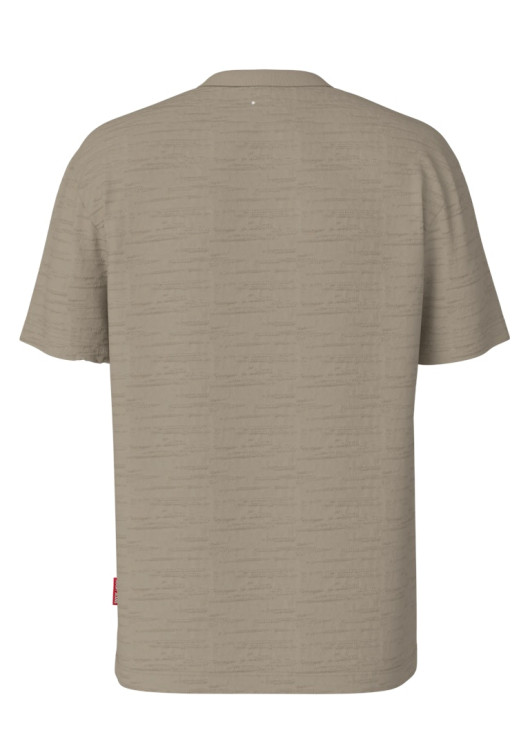 Tento model v trendy šedobéžovém odstínu vyniká originálním úpletem s plastickou texturou nepravidelných horizontálních linek. Tento rafinovaný detail dodává tričku dynamiku a neotřelý, lehce organický vzhled. Je vyrobeno ze 100% čisté bavlny, což zaručuje skvělou prodyšnost, měkkost a příjemný pocit na těle i během horkých dnů.