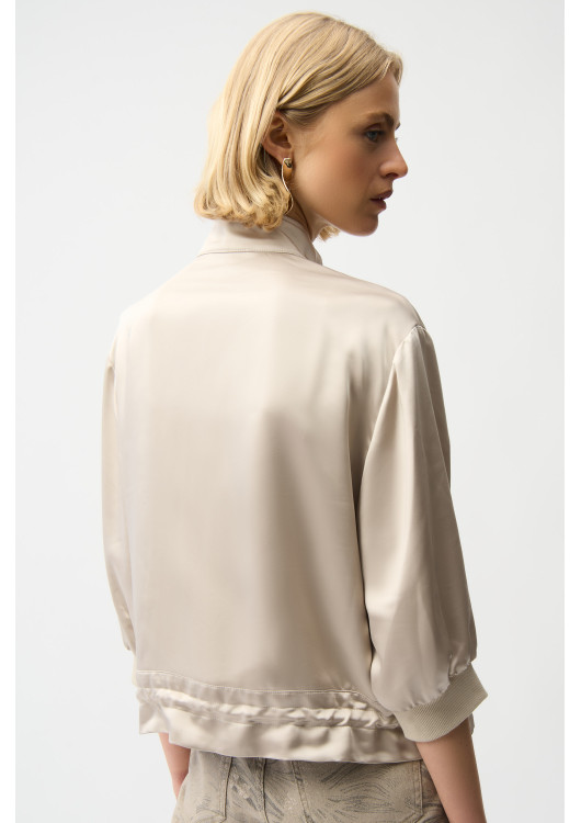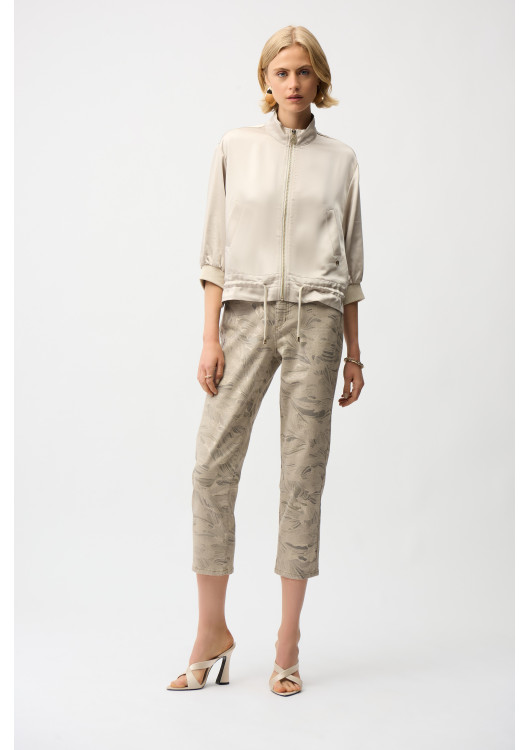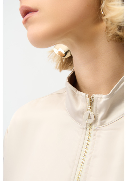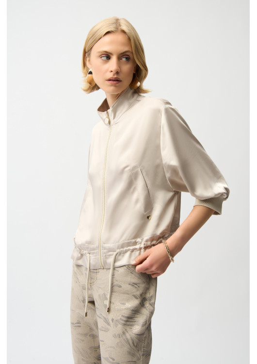 Zažijte dokonalou kombinaci pohodlí a stylu se sportovní bundou Joseph Ribkoff. Díky volnému střihu a délce po boky je tento všestranný kousek ideální pro běžné nošení i sportovní příležitosti. Výstřih s límečkem, tříčtvrteční rovné rukávy a praktické zapínání na zip, stahovací šňůrka a kapsy jej činí funkčním i módním zároveň. Je ideální pro každodenní nošení a bez námahy pozvedne váš šatník.