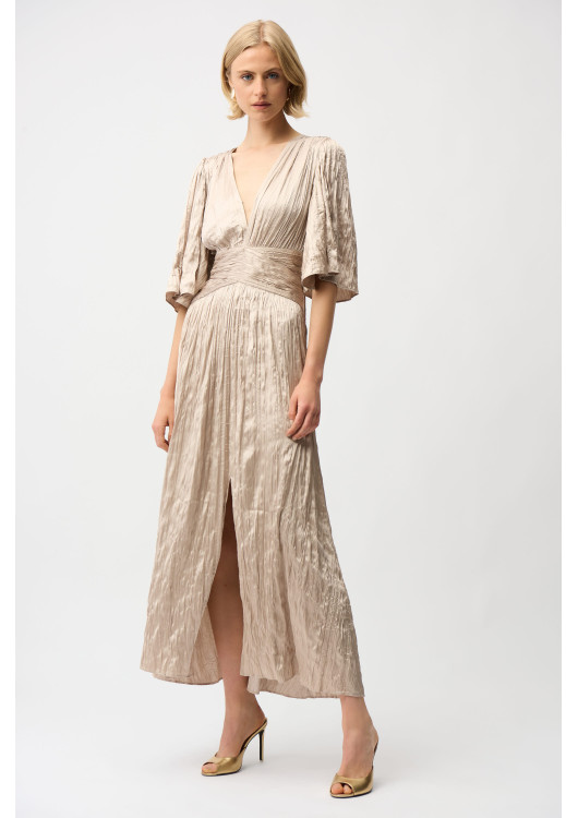 Představujeme dokonalý kousek od Josepha Ribkoffa: úžasné šaty v maxi délce, které bez námahy spojují eleganci a všestrannost. Tyto šaty s lichotivým výstřihem do V a zavinovacím střihem se vyznačují páskem, volánky a rozparky pro větší sofistikovanost. Jejich jednoduchý vzor a nafouklé tříčtvrteční rukávy dodají vašemu šatníku nádech ženskosti. Jsou ideální pro formální, letní i neformální příležitosti.