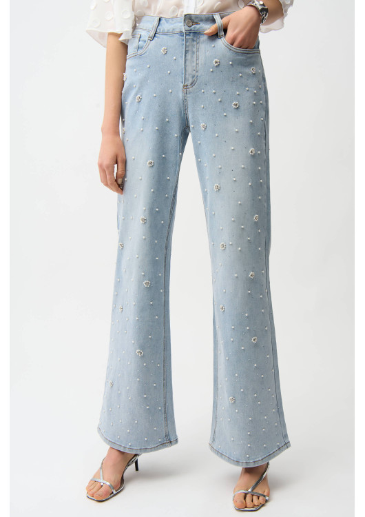 Představujeme vám to nejlepší z ležérního letního stylu od Josepha Ribkoffa. Tyto džíny s vysokým pasem a plnou délkou se vyznačují elegantním rozšířeným střihem, který vyzařuje odvážný nádech. Díky jednoduchému vzoru, zdobené peličkami a páskem pro větší šmrnc, jsou vhodné pro každou příležitost. Vychutnejte si nenucenou eleganci s těmito výraznými džínami, které jsou navrženy tak, aby zanechaly dojem.