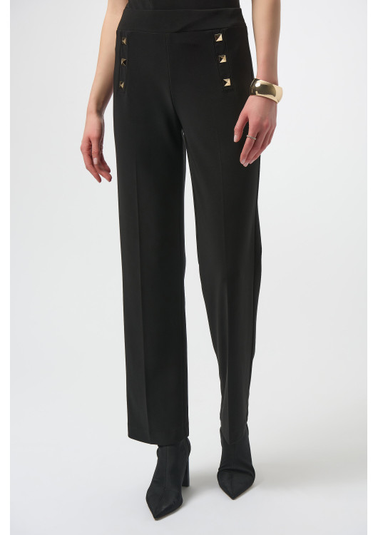 Formální kalhoty Joseph Ribkoff, navržené pro moderní profesionály, kteří si cení stylu i pohodlí. Tyto kalhoty se středním pasem a plnou délkou se vyznačují rovným střihem, díky čemuž jsou ideální pro obchodní nebo kancelářské prostředí. Tyto kalhoty kombinují eleganci s moderním stylem.
