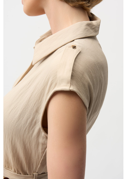 Vkročte do světa ležérní elegance s midi košilovými šaty od Josepha Ribkoffa. Tyto šaty se stylovým límečkem a bez rukávů jsou ideální pro ležérní letní vycházky. Pásek v pase, knoflíky a kapsy dodávají šatům funkční kouzlo, zatímco jednoduchý vzor a ženský styl zajišťují nadčasový vzhled. Vychutnejte si pohodlí a všestrannost tohoto nezbytného kousku šatníku, který je navržen tak, aby pozvedl váš každodenní vzhled.