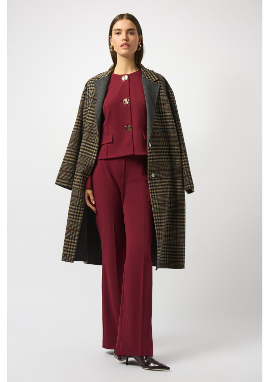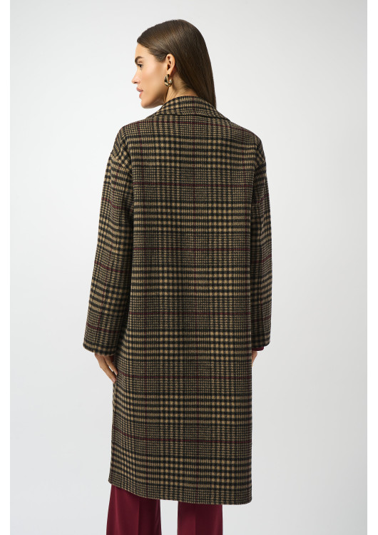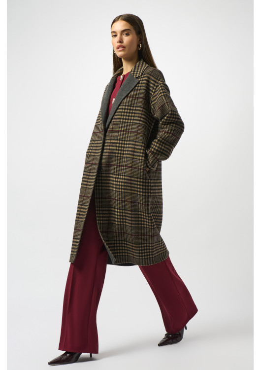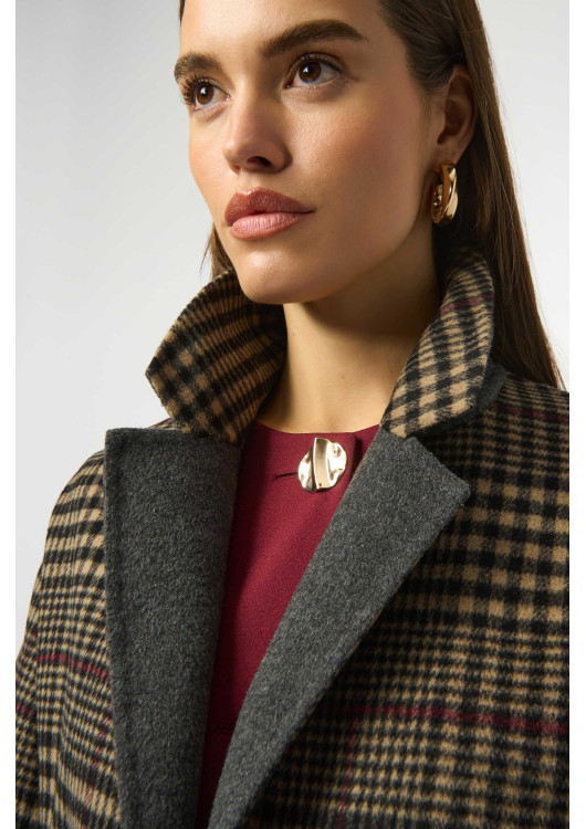 Kostkovaný kabát Joseph Ribkoff je ztělesnění klasického a elegantního stylu. Tento dlouhý kabát oversized střihu se vyznačuje nadčasovým kostkovaným vzorem a sofistikovaným vroubkovaným límcem. Díky zapínání na druky a praktickým kapsám se plynule hodí od ležérních až po formální příležitosti. Dlouhé rukávy a bezchybný střih z něj činí všestranný základní kousek každého šatníku.