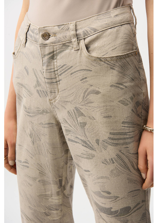 Představujeme kalhoty Joseph Ribkoff slim fit, ideální pro neformální letní příležitosti. Tyto zkrácené kalhoty se středním pasem se stylovým květinovým vzorem, který nenuceně ztělesňuje ležérní eleganci. Díky detailům na knoflíky a praktickým kapsám tyto kalhoty kombinují funkčnost s módou, což z nich činí nezbytný doplněk vašeho šatníku. Užijte si dokonalou kombinaci pohodlí a stylu s kalhotami Joseph Ribkoff.
