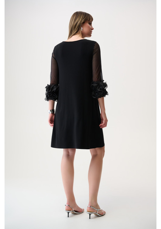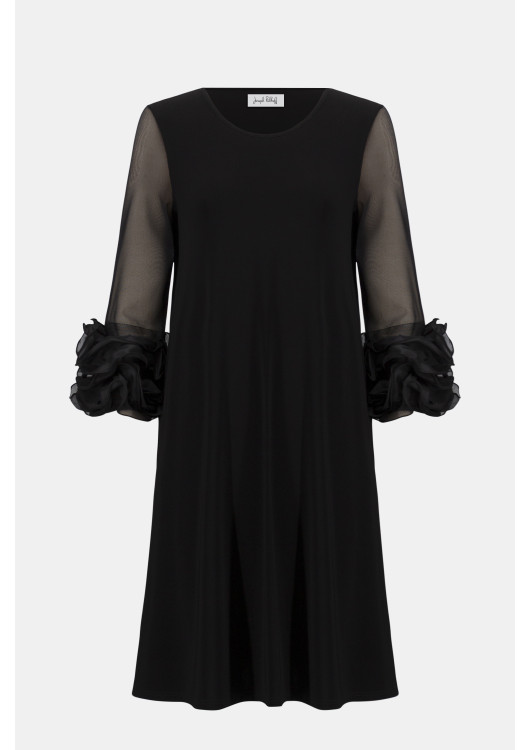 Vkročte do světa ležérní elegance s těmito šaty áčkového střihu od Josepha Ribkoffa, které se prodávají jak pro neformální, tak i pro formální příležitosti. Mají volánové, průsvitné dlouhé nafoukané rukávy a lichotivý kulatý výstřih. Díky jednoduchému vzoru a ženskému stylu jsou všestranným doplňkem vašeho šatníku a ideálním doplňkem pro elegantní vzhled, ať už jdete kamkoli.