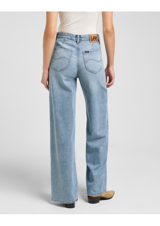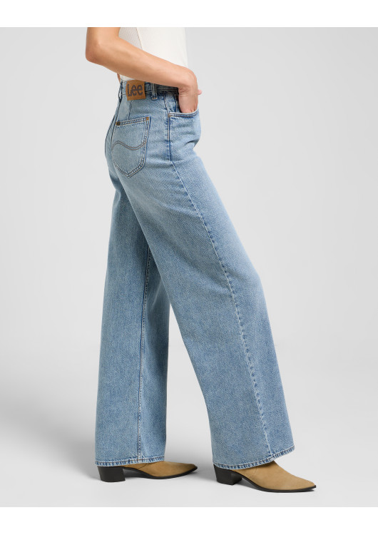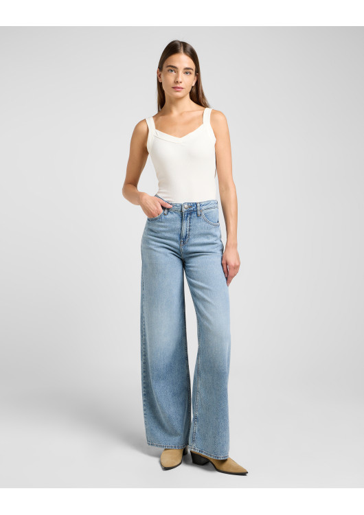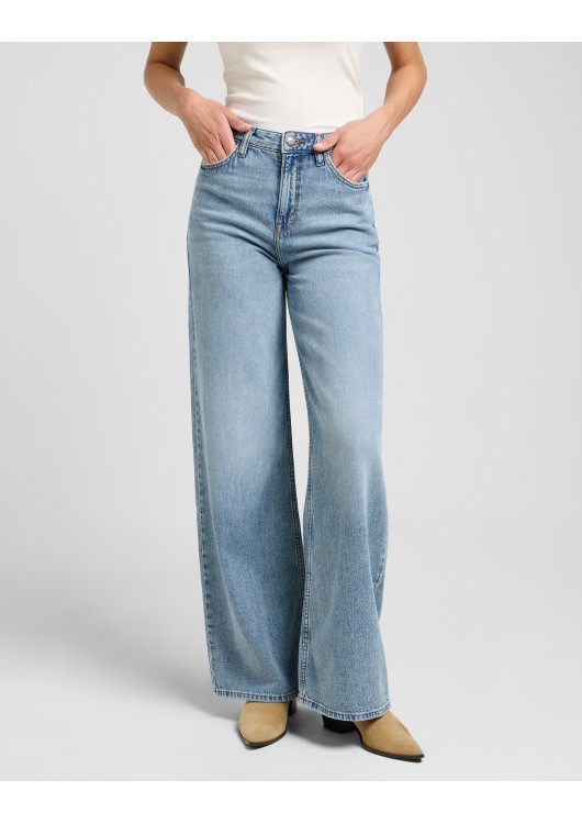 Tento střih v palazzo stylu se perfektně hodí k teniskám, kozačkám nebo vysokým podpatkům. Ultra vysoký pas vytváří lichotivou siluetu a je ideální pro zastrčení košile nebo nošení zkráceného trička. Díky použití směsi bavlny a lyocellu se tento 280g denim snadno nosí a je vyroben z odolného materiálu. Sepraný denim Take the Hint vytváří krásný vintage vzhled. Nebesky modrá barva kontrastuje s velkými melíry a dodává mu jemný obnošený vzhled.