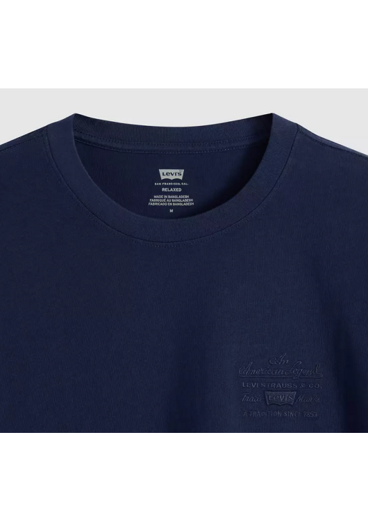Hledáte kvalitní tričko, které působí dospěle, stylově a bez zbytečného křiku dává najevo váš dobrý vkus? Tento tmavě modrý model od legendární značky Levi's® je přesně pro vás. Místo klasického výrazného loga zdobí levou stranu hrudi jemný potisk tón v tónu s textem odkazujícím na americké dědictví a tradici značky.