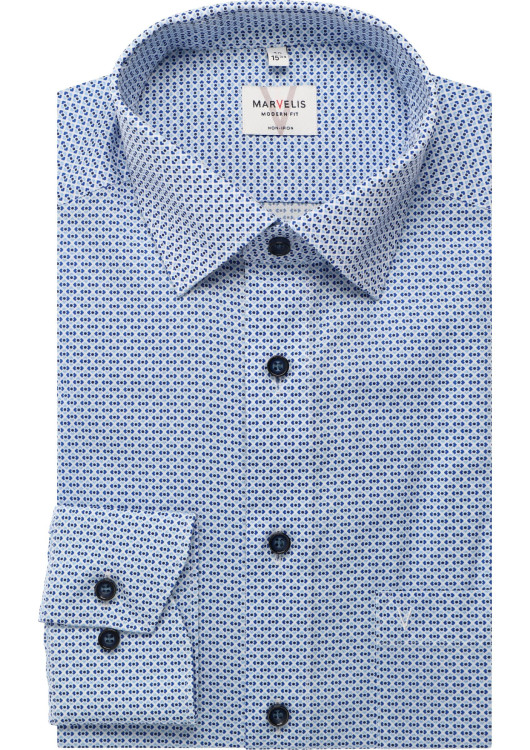 Košile Marvelis Modern Fit, nežehlivá s límečkem New Kent. Stylová elegance v atraktivním odstínu zelené. Jemná popelinová tkanina zajišťuje pohodlný pocit a je také nemačkavá , což usnadňuje každodenní život. Lehce přiléhavý střih a sportovní manžety dodávají této košili moderní siluetu. Límec New Kent a decentní náprsní kapsa doplňují elegantní design, zatímco tištěný vzor dodává košili nádech individuality. Tato košile je ideální na jaro a lze ji kombinovat mnoha způsoby, abyste udělali stylový dojem jak v kanceláři, tak i ve volném čase.