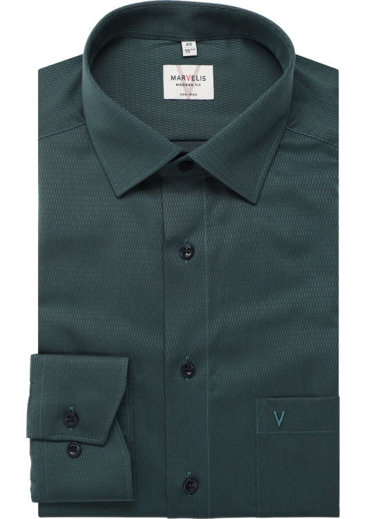 Zažijte nadčasovou eleganci s košilí Marvelis Modern Fit v tmavě zelené barvě. Lehce přiléhavý střih vytváří moderní siluetu, zatímco límec New Kent a sportovní manžety dodávají klasický nádech. Tato košile je vyrobena z vysoce kvalitní bavlny s jemnou texturou a nabízí nejen styl, ale i výjimečné pohodlí.
