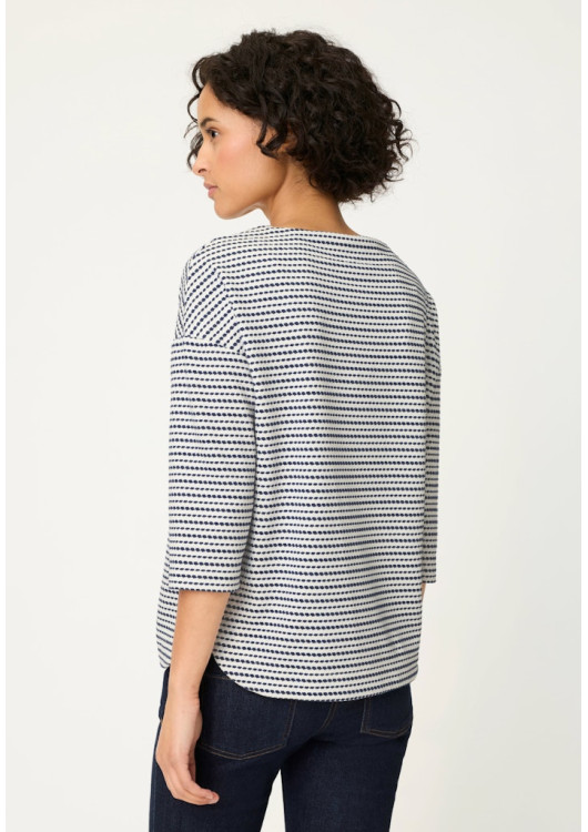 Objevte dokonalou rovnováhu mezi elegancí a funkčností s touto dámskou mikinou značky Olsen. Model z kolekce Riviera Mood zaujme na první pohled svou unikátní plastickou strukturou v námořnickém stylu, ale zamilujete si ho především pro jeho materiál.