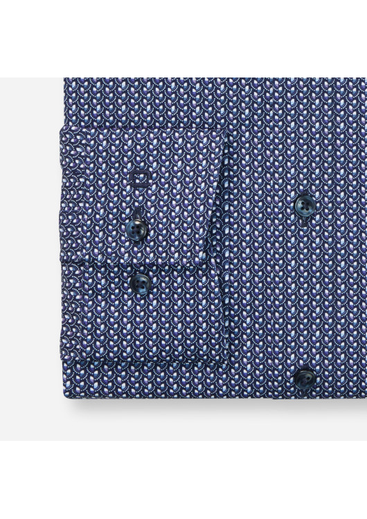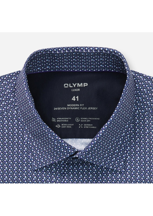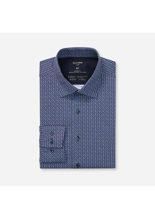Elegantní potisk v bílé barvě na námořnickém vzoru, atraktivní střih. Tak se prezentuje tato inovativní košile OLYMP Luxor 24/Seven z úpletu Dynamic Flex. Měkká tkanina z bavlny a elastanu podtrhuje sportovní eleganci s individuálním nádechem. Harmonicky doplněná elegantním límcem New Kent. Prodyšná, rychleschnoucí, snadno se žehlí. Materiál 92% bavlna/ 8% elastan.