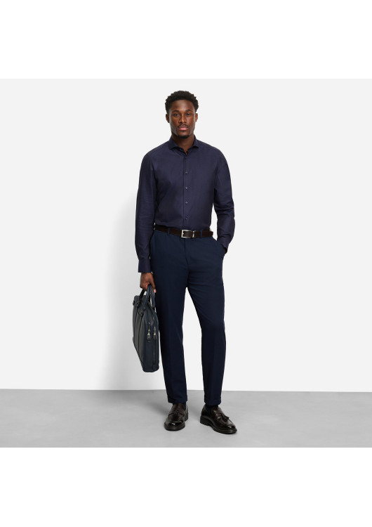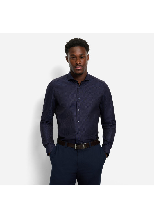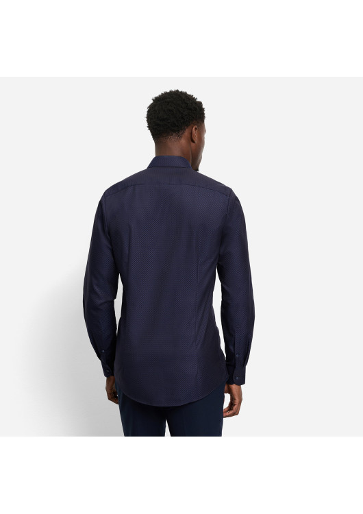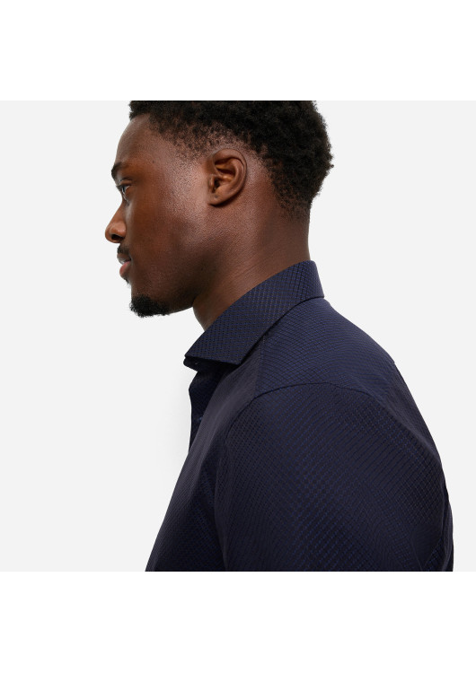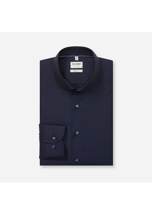 Bohatá tkanina v tmavě modré barvě podtrhuje stylový obchodní vzhled, přiléhavý střih Body Fit zajišťuje dynamický výkon – tato jednobarevná pánská košile OLYMP Level Five se sofistikovaným efektem changé se doporučuje pro zvláštní příležitosti. Módní výrazný výstřih působí jako atraktivní doplněk. Snadno se žehlí. Materiál 100% bavlna.