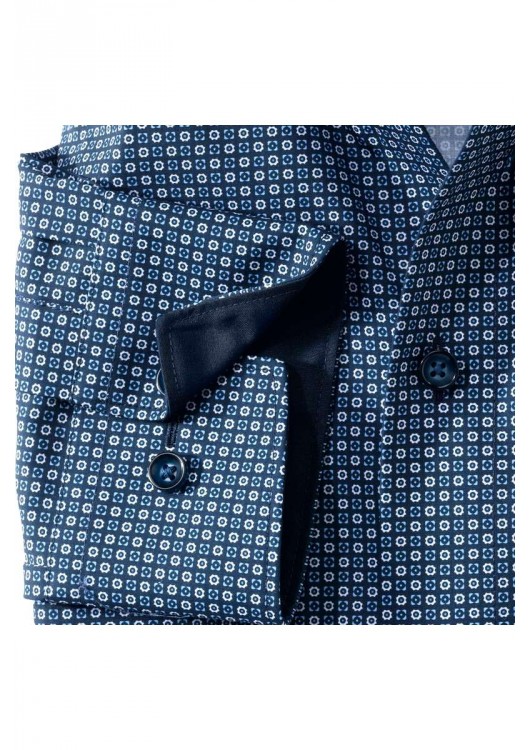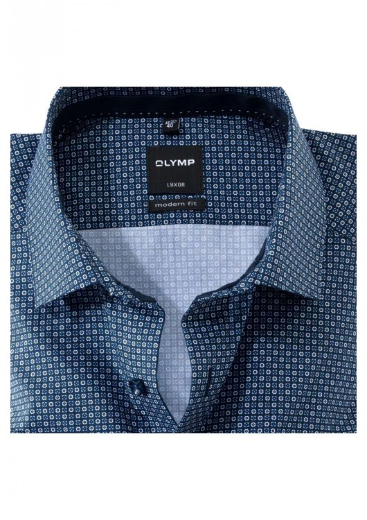 * Košile OLYMP Modern Fit (dříve kolekce Slim Line) s límečkem New Kent, v barvě námořnická/bílá - vzorovaná. Je vždy nežehlivá a je známý pro své vynikající vlastnosti při nošení a ošetřování, nekompromisní kvalitu a maximální pohodlí. Kromě nového užšího střihu se neliší od předchozí košile Luxor, přičemž OLYMP Luxor Modern Fit zaručuje v každém případě dostatečnou volnost pohybu. Také testováno podle Öko-Tex Standard 100.