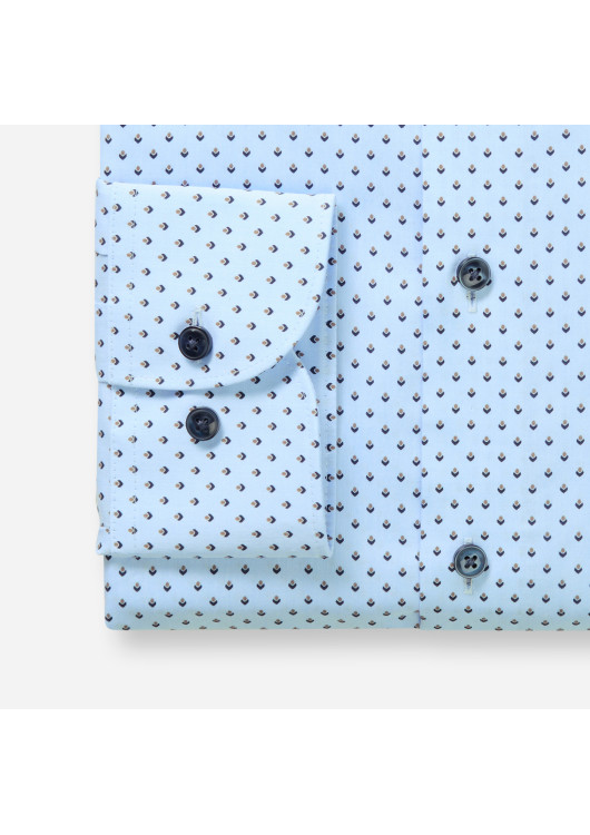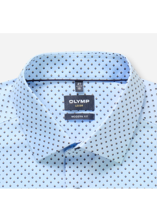 Stylová OLYMP Luxor Modern Fit s kontrastním vzorem. Tato přiléhavá moderní košile ze 100% bavlny zaručuje stylový vzhled a vynikající pohodlí. Všestranný límec New Kent vypadá skvěle i bez kravaty. Není třeba žehlit.