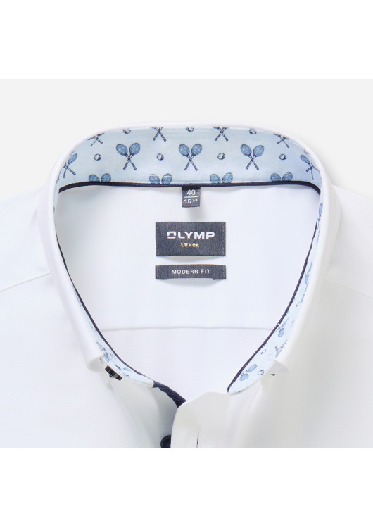 Tato stylová košile OLYMP Luxor pro milovníky tenisu má na vnitřku límce a manžetách zobrazené tenisové takety. Přiléhavá moderní košile ze 100% bavlny zaručuje stylový vzhled a vynikající pohodlí. Všestranný límec New Kent vypadá skvěle i bez kravaty. Není třeba žehlit.