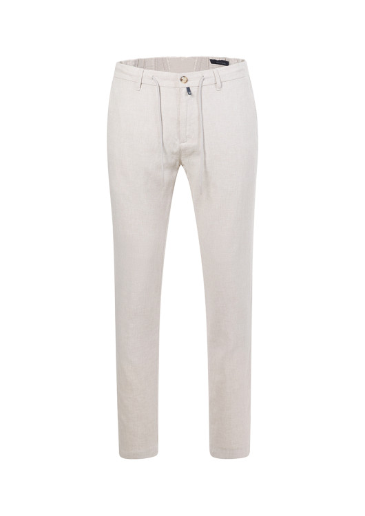 * Díky vysokému podílu lnu kalhoty přirozeně chladí, zatímco příměs bavlny zajišťuje, že jsou měkčí na dotek a méně se mačkají než čistý len.