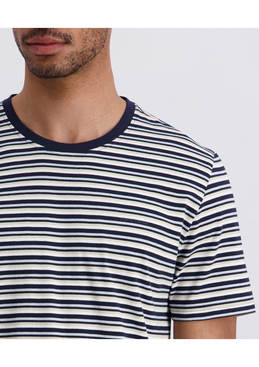 Hledáte vršek, který okamžitě oživí váš ležérní look, ale přesto si zachovává elegantní ráz? Toto tričko od značky Pierre Cardin přináší moderní interpretaci klasických pruhů. Kombinace světlého podkladu a jemných barevných linií dodává tričku hloubku a sofistikovanost, která se skvěle hodí k letním procházkám i posezení na terase.