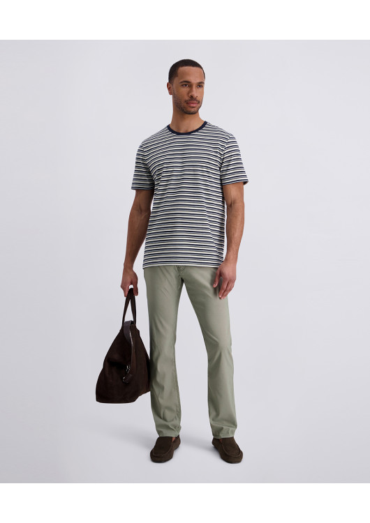 Hlavním designovým detailem je decentní vyšívané logo značky na hrudi a kontrastní tmavě modrý lem u krku, který celému kousku dodává sportovně-elegantní nádech. Je to tričko stvořené pro muže, který oceňuje kvalitu přírodního materiálu a chce vypadat upraveně bez zbytečného úsilí. Dokonalý společník pro dny, kdy se chcete cítit uvolněně a přitom šik.