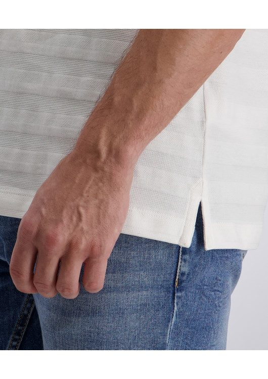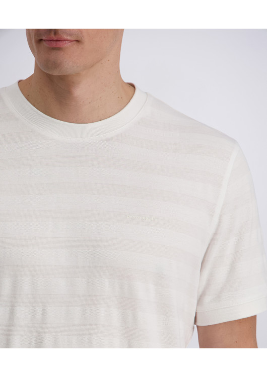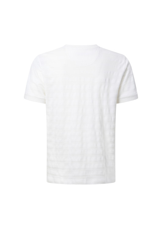 Hledáte vršek, který povýší váš ležérní look na novou úroveň, ale přitom zůstane decentní a mužný? Toto bílé triko od značky Pierre Cardin přináší do vašeho šatníku hloubku díky rafinované struktuře úpletu. Jemné vodorovné linky vytvářejí elegantní vzor, který skvěle vynikne na slunci a dodává tričku mnohem luxusnější nádech než u běžných hladkých modelů.