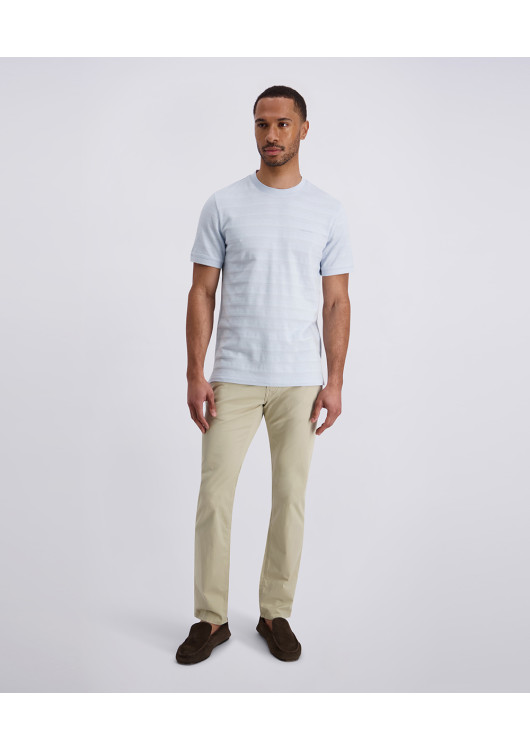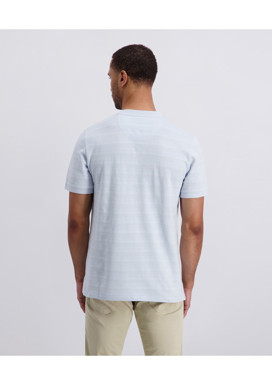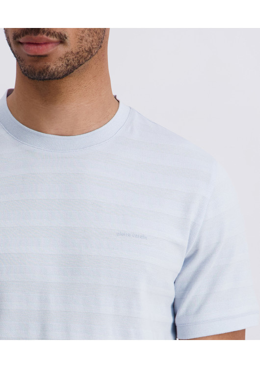 Hledáte vršek, který povýší váš ležérní look na novou úroveň, ale přitom zůstane decentní a mužný? Toto světle modré triko od značky Pierre Cardin přináší do vašeho šatníku hloubku díky rafinované struktuře úpletu. Jemné vodorovné linky vytvářejí elegantní vzor, který skvěle vynikne na slunci a dodává tričku mnohem luxusnější nádech než u běžných hladkých modelů.