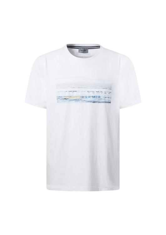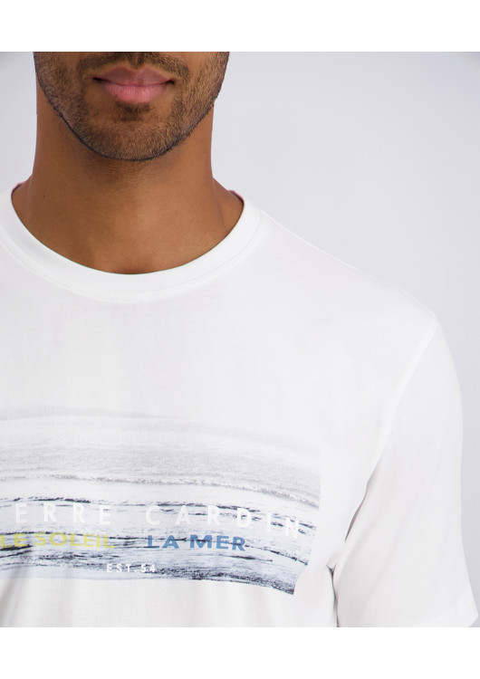 Hledáte triko, které okamžitě navodí pohodu dovolené na riviéře? Tento model od značky Pierre Cardin představuje dokonalý balanc mezi střídmostí a nápaditostí. Jemný panoramatický tisk v pastelových modrých a žlutých tónech dodává bílému základu hloubku a moderní charakter.
