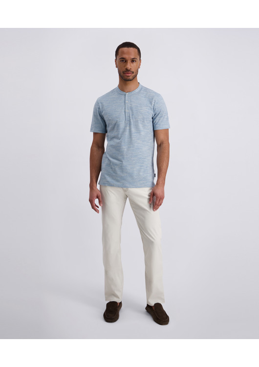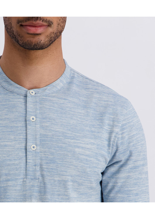 Hlavním designovým detailem je minimalistický stojáček bez klasického límečku, který triku propůjčuje moderní a čistý vzhled. Je to kousek stvořený pro muže, který oceňuje kvalitu přírodního materiálu a chce vypadat upraveně, aniž by musel obětovat pohodlí. Tričko, které skvěle dýchá a díky světle modré barvě se neuvěřitelně snadno kombinuje s jakýmkoliv spodním dílem.