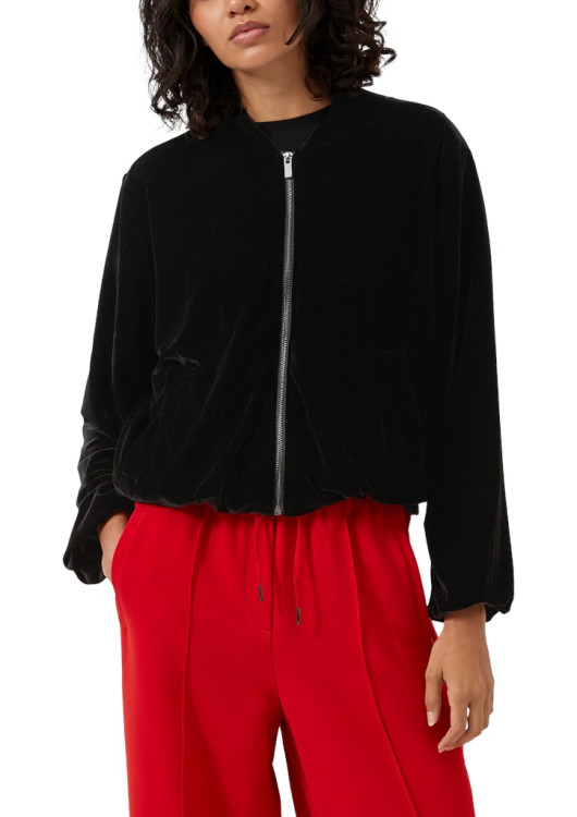 Ponořte se do čistého pohodlí s touto luxusní sametovou bundou do interiéru. Volný střih a spuštěná ramena vytvářejí nenuceně elegantní siluetu, zatímco praktické lemované kapsy dodávají funkčnost. Bomber límec je ideální pro útulné večery doma nebo neformální setkání a dodá vašim každodenním chvílím nádech uvolněného lesku.