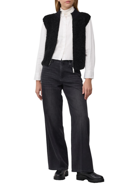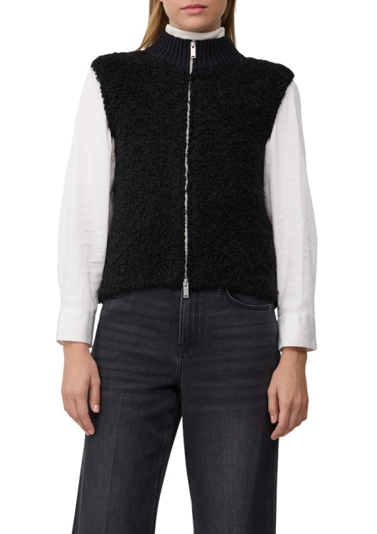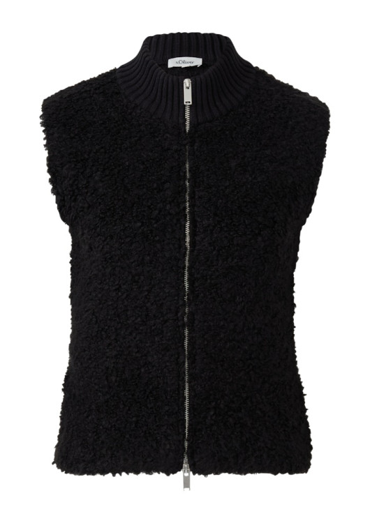 Tato útulná buklé vesta ze směsi alpaky a vlny vás bude hýčkat příjemným teplem a měkkým pohodlím. Praktický obousměrný zip a ochranný stojáček z ní činí ideálního doplňku pro ležérní outfity.