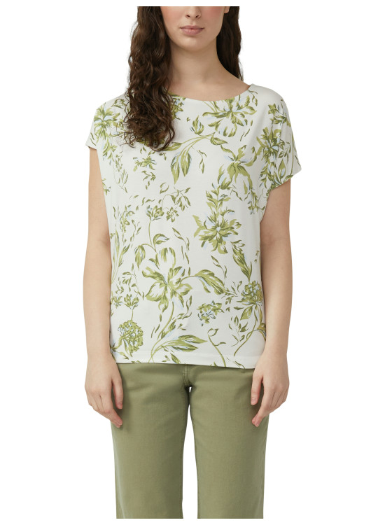 Obohaťte svůj letní šatník o kousek, který dýchá ženskostí a neuvěřitelnou lehkostí! Toto překrásné tričko od značky s.Oliver je dokonalou volbou pro dny, kdy chcete vypadat upraveně, ale zároveň se cítit absolutně svobodně. Na první pohled vás okouzlí jemný, celoplošný botanický potisk s motivem lístků v tlumené khaki barvě na světlém, krémovém podkladu. Pozornost poutá také elegantně řešený výstřih, který je uprostřed doplněn o drobný, velmi ženský průstřih do V. Krátké rukávy zdobí ležérní, fixně ohrnuté lemy, které celému modelu dodávají svěží a moderní šmrnc. Zásluhou materiálu s drtivým podílem prémiové viskózy tričko na těle fantasticky splývá, v horku příjemně chladí a poskytuje bezkonkurenční prodyšnost od rána až do večera.