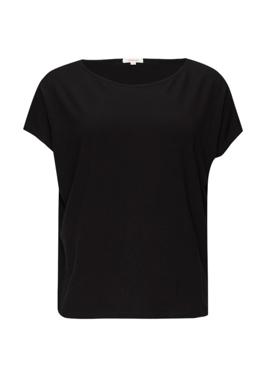 Méně je někdy více. Toto černé tričko s.Oliver je důkazem, že v jednoduchosti je krása. Díky volnějšímu střihu a jemně spadlým rukávům působí ležérně a uvolněně, zatímco elegantní lodičkový výstřih mu dodává ženskost.