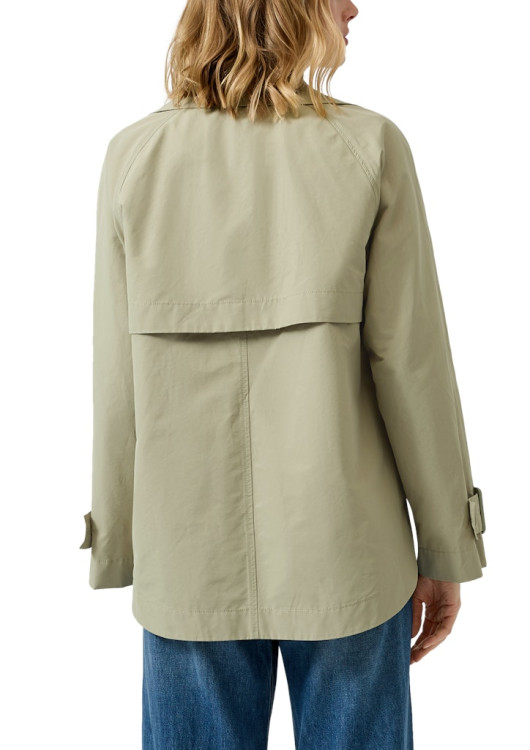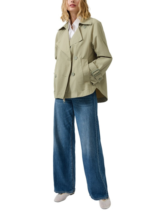 Vneste do svého šatníku lehkost s tímto nádherným jarním kabátkem značky s.Oliver. Pokud hledáte elegantní alternativu ke sportovním bundám, tento zkrácený trenčkot v jemném šalvějovém odstínu je tou pravou volbou. Jeho volnější "swing" střih vám dodá šmrnc a umožní pohodlné vrstvení i přes silnější svetr.
