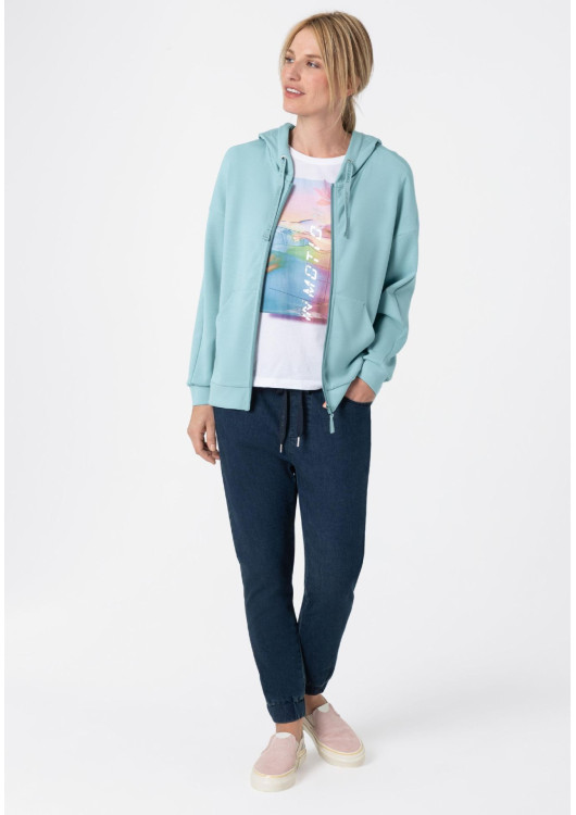 Sportovní univerzální mikina s kapucí, zaujme čistým a kvalitním designem. Model má moderní, jednoduché detaily a neuvěřitelně měkký strečový interlock vyrobený ze směsi viskózy a polyamidu. Vlastnosti: kapuce, překrývající se ramena s odsazenými švy rukávů, celopropínací přední zip, našitá klokaní kapsa a připevněné manžety na rukávech a lemu. Nic není více cool než sladěná mikina s kapucí a cargo tepláky.